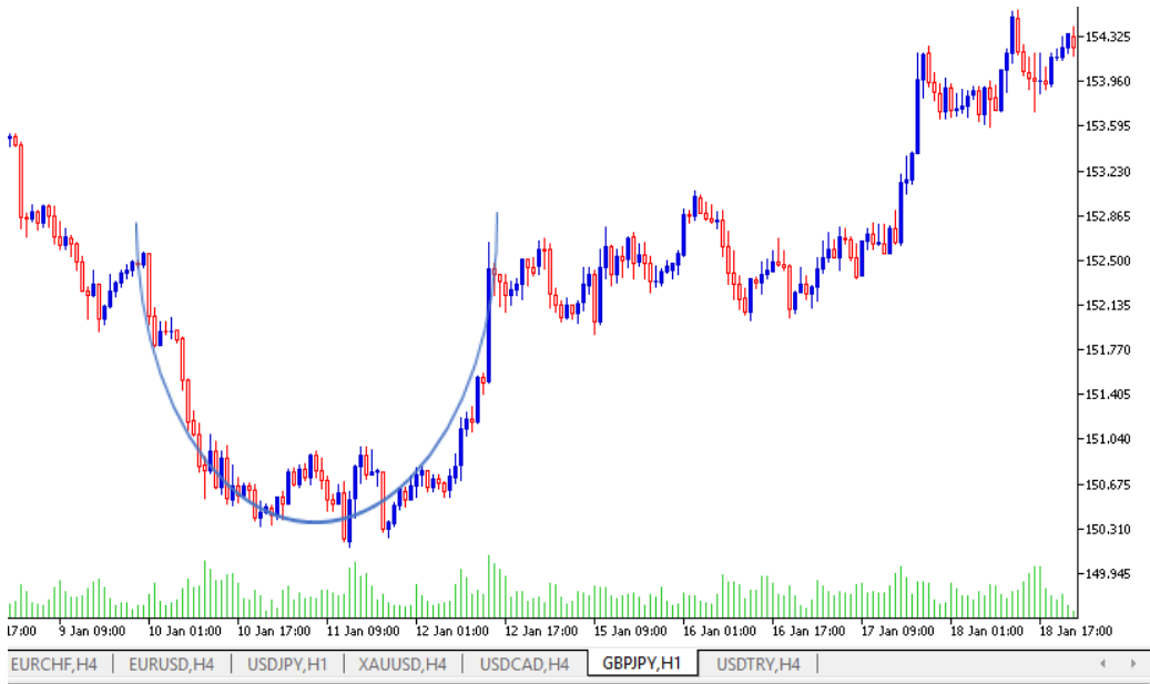 También se puede usar como patrón de continuidad de tendencia en el caso de tendencias bajistas, pero la tasa quedaría al revés, es decir sería una “U” inversa, y el resto de los supuestos también serían a la inversa.