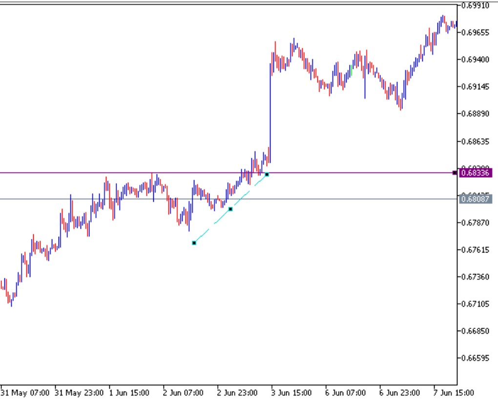 Veamos un ejemplo de un triángulo ascendente en análisis técnico: